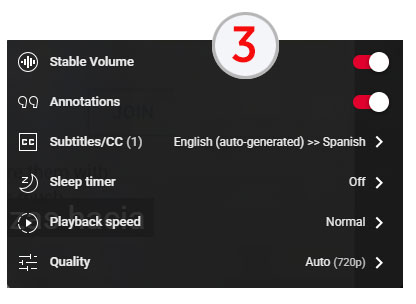 Traducciones automáticas en YouTube: debido al gran número de vídeos, muchos siguen mostrando subtítulos en inglés generados automáticamente por YouTube y no tienen subtítulos alternativos. Estos se pueden traducir automáticamente siguiendo estos pasos: